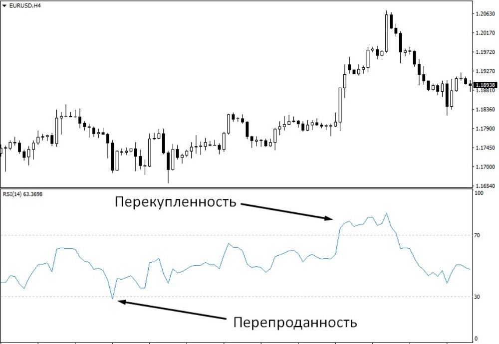 После того, как индикатор добавлен на график, трейдер увидит его в рабочей области. Он занимает своё собственное пространство и не мешает восприятию самого графика. Представляется в виде линии, которая движется вверх и вниз. С правой стороны есть шкала значений, она ограничена показателями 0 и 100. В настройках индикатора мы можем поменять его внешний вид, а из настроек есть только период, о котором будет рассказано далее. В целом, индикатор RSI относительно прост в использовании, его сигналы типичны и могут показаться знакомыми по работе с другими осцилляторами. Но, при этом у него есть свои особенности, которые не увидим в других алгоритмах, на них основано немало торговых стратегий. То есть RSI может выступать в качестве единственного метода анализа графика. Но гораздо чаще он встречается в связке с другими индикаторами, в этом случае они фильтруют сигналы друг друга и дополняют общую картину, позволяя повысить эффективность торговли.
