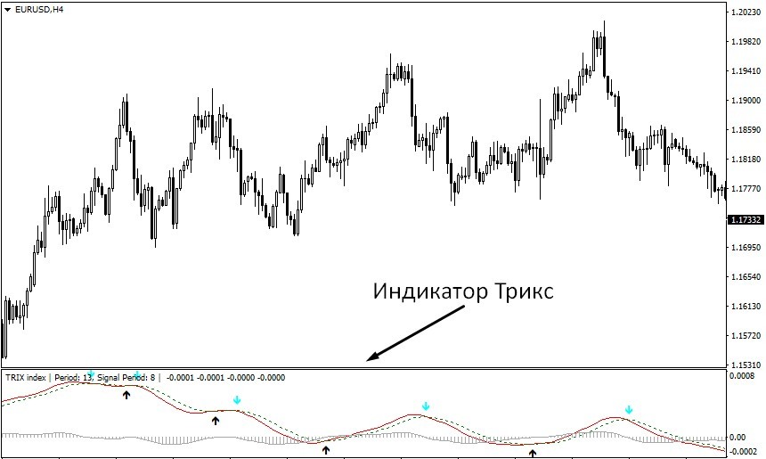 В общем, Trix представляет собой довольно интересный алгоритм, построенный на простой скользящей средней. Он может быть использован в качестве основы для торговой системы, но гораздо чаще трейдеры его используют как один из нескольких инструментов анализа.