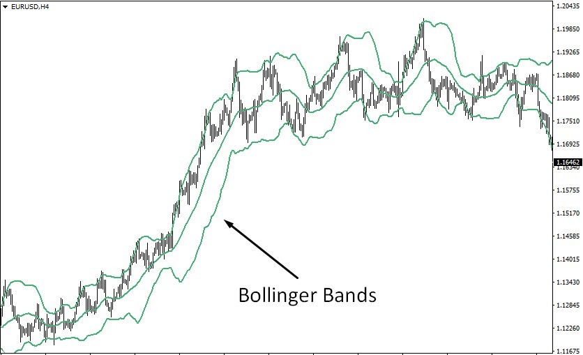 Один из лучших индикаторов, способных определять волатильность. Боллинджер определённо заслуживает своё место в списке лучших алгоритмов, используемых в 2020. Представляет собой ценовой канал, серединой которого является скользящая средняя, а вот внешние границы подвижны – они расширяются по мере того, как ценовая активность повышается. И, в отличие от линейных границ, в Боллинджере линии расходятся с учётом нормального отклонения, то есть тут используется довольно интересный подход, который можно встретить в статистических вычислениях. Действительно, диапазон цены в таком исполнении получается гораздо более актуальным, у нас появляются хорошие ориентиры и общее понимание перспектив движения. Помимо этого, канал движется и изменяется в соответствии с трендом – за это отвечает, как раз простая скользящая средняя в его основе. Стратегии работы с Боллинджером на форексе разнообразны, некоторые предполагают торговлю на отбой от границ в рамках консолидации, другие же ориентированы на трендовую торговлю и открытие сделок только в основном направлении рынка.