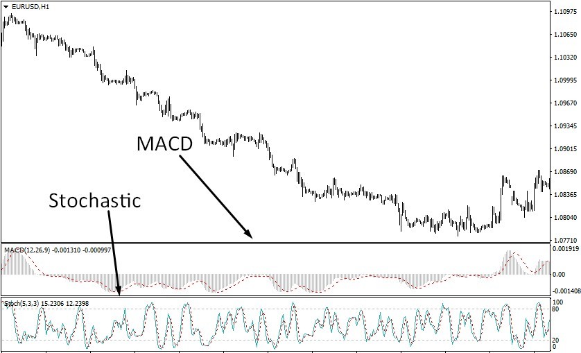 Ещё один осциллятор, который успел стал стать классикой и который мы попросту не можем не включить в список лучших индикаторов 2020 года. Чаще всего Стохастик применяют в торговле по тренду, когда трейдер ловит развороты после коррекций. Это очень удобно и позволяет набирать позиции по тренд – снижаются риски, есть возможность переводить ордера в безубыток по мере развития тренда. В этом случае обычно берётся стандартное значение параметров, которое показывает развороты достаточно оперативно. Также стохастический осциллятор однозначно будет полезен в работе с боковиком на форексе, и чем крупнее период, тем лучше. Довольно популярно использованием этого осциллятора в паре с другими индикаторами, например, с тем же МАКД одном окошке – и место в рабочем пространстве не занимает, и в то же время не мешает восприятию диаграммы, так как сам состоит из двух простых линий. Для работы с более крупными движениями можно пропорционально увеличивать периоды, часто можно увидеть параметры (10-6-6), так что индикатор можно назвать универсальным.