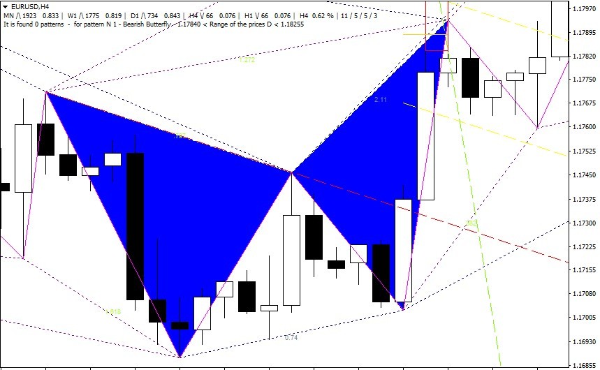 Данный индикатор разрабатывался целой командой трейдеров и в конечном виде представляет собой практически автоматизированную систему распознавания отдельной категории паттернов – гармонических. На данный момент версии ZUP являются лучшими индикаторами такого рода, в 2020 актуальными являются v150 и выше. Алгоритм отслеживает колебания цены и сопоставляет их размеры между собой. При образовании определённой последовательности значений из списка коэффициентов фибоначчи, образуется паттерн, который индикатор отображает в виде синих треугольников в графической области. Самое главное преимущество ZUPзаключается в том, что он рисует действительно рабочие паттерны, а не всё подряд, что хоть как-то похоже на них. Индикаторы этого направления многочисленны и разнообразны, но ни один из них не обладает тем функционалом, который заложен в наш вариант. По сути, это готовая торговая система – на графике отображается возможная граница окончания паттерна как по времени, так и по ценовой шкале, а также линия тейка и уровни для оптимального входа.
